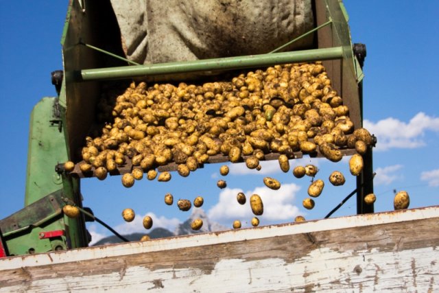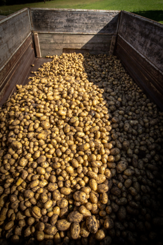 Nach ein paar Probegrabungen startet die Ernte zwischen Ende August und September. Wir fahren mit unserer Erntemaschine (ein altes Monstrum :) ) in den Acker und ernten möglichst schonend die Kartoffeln. Die Kartoffeln trocknen ein Paar Tage und werden dann von uns Sortiert und abgepackt. Nun denkt man ist die Arbeit erledigt?