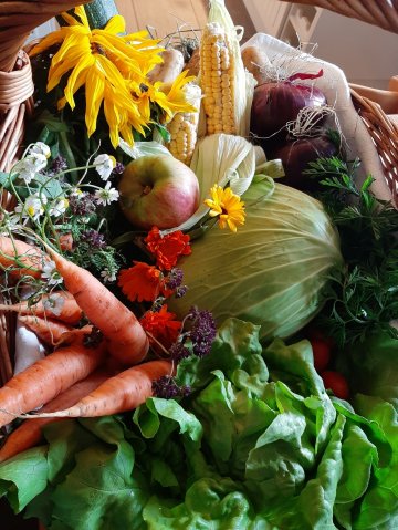 Wir lieben Gemüse. Im kleinen Umfang zogen wir unser Bio Gemüse vom Samen selbst auf. Mittlerweile haben wir um einiges mehr und kaufen unsere Bio Pflänzchen bei ausgewählten Bio-Gärtnereien. Nur ganz besonderes Gemüse wie die Mini- oder Zitronengurken, alte Sorten an Grünkohl, Tomaten und Salten ziehen wir selbst.