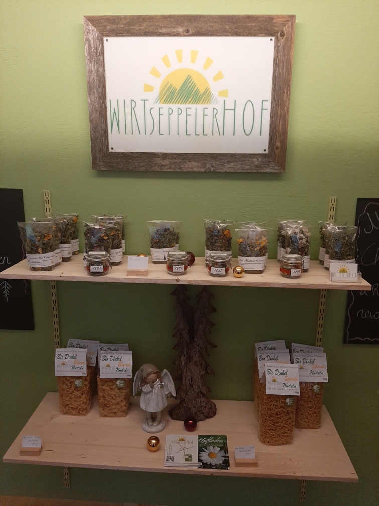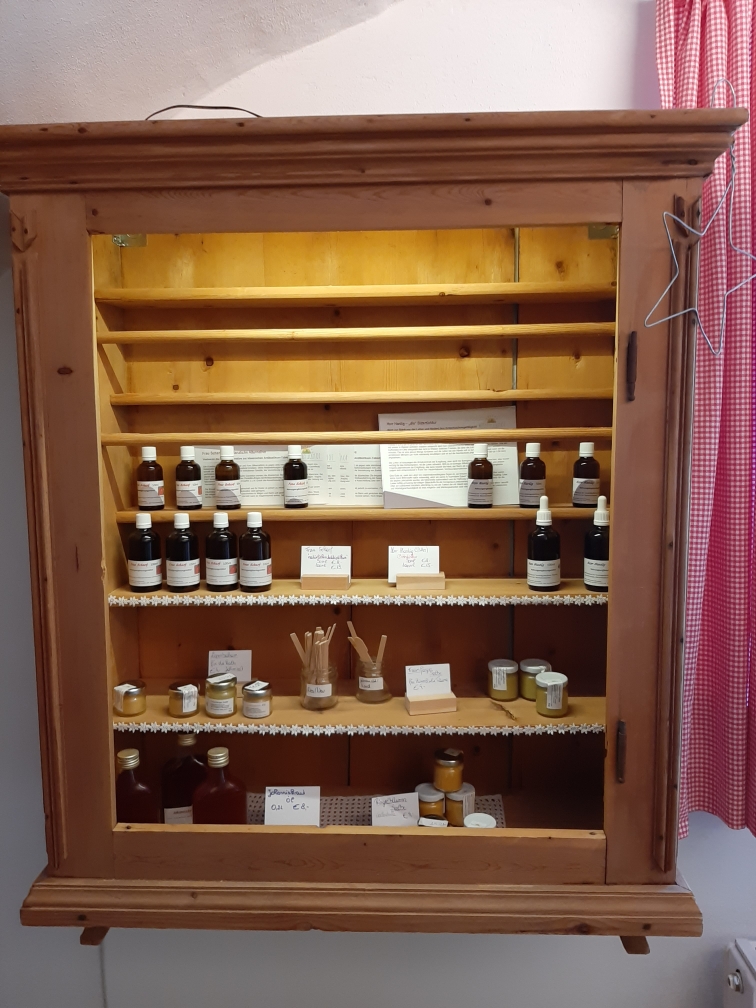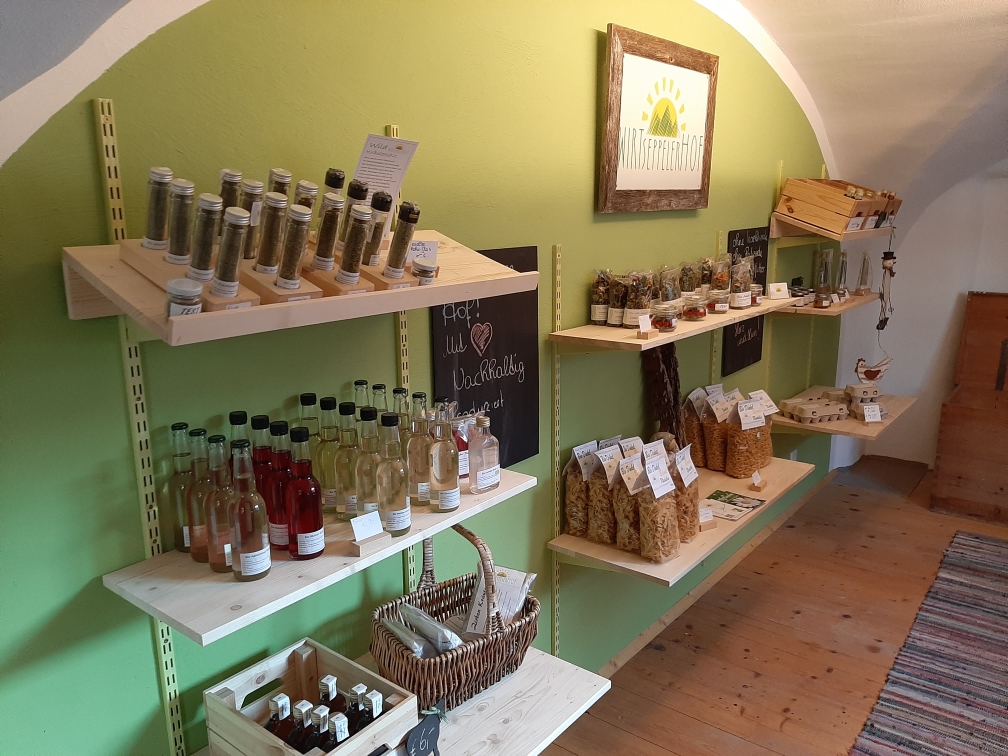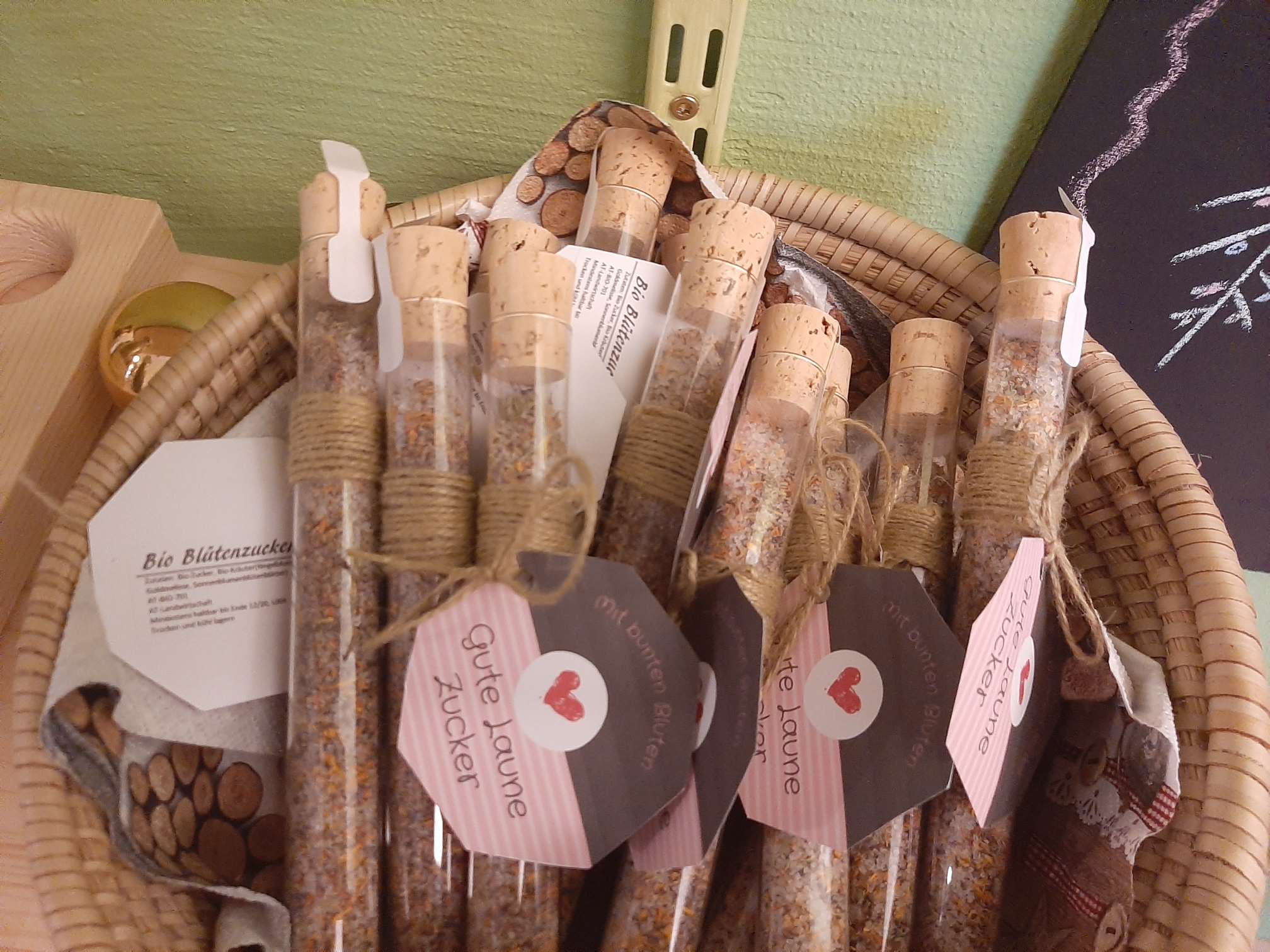 Alle Produkte wurden mit Liebe per Hand gefertigt. Die Kräuterprodukte stammen natürlich aus eigenem BIO-Anbau von unserem Kräutergarten. Gerne können Sie diesen auch besichtigen. Die Eier stammen natürlich von unseren Hühnern und die Kartoffeln von unseren Feldern. Es gibt auch verschiedene Sirupe wie Holunder-, Apfelminze oder Malvensirup.