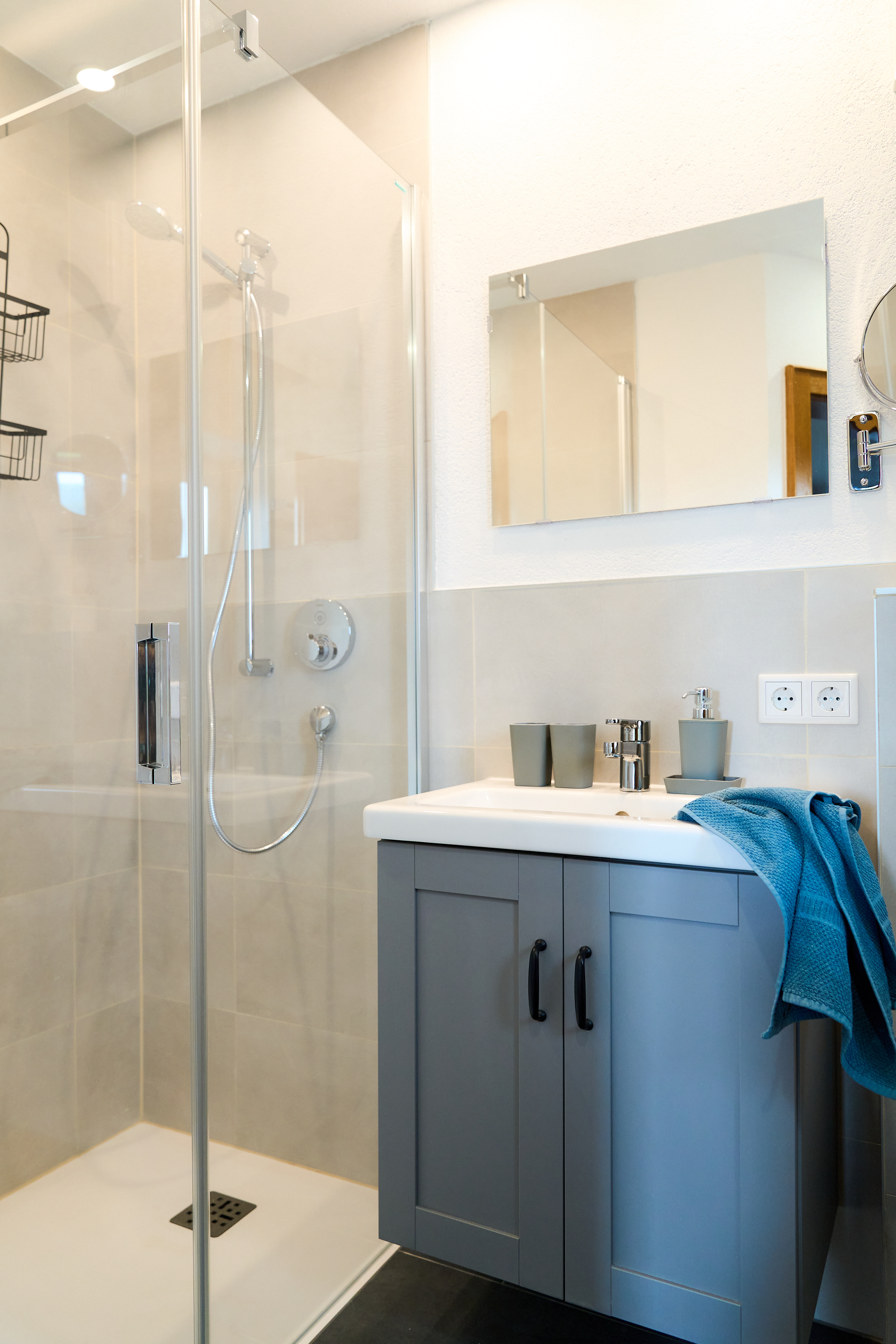 - Voll ausgestattete Küche mit Kaffeemaschine, Geschirrspüler, Wasserkocher, Toaster, Kühlschrank mit Gefrierfach